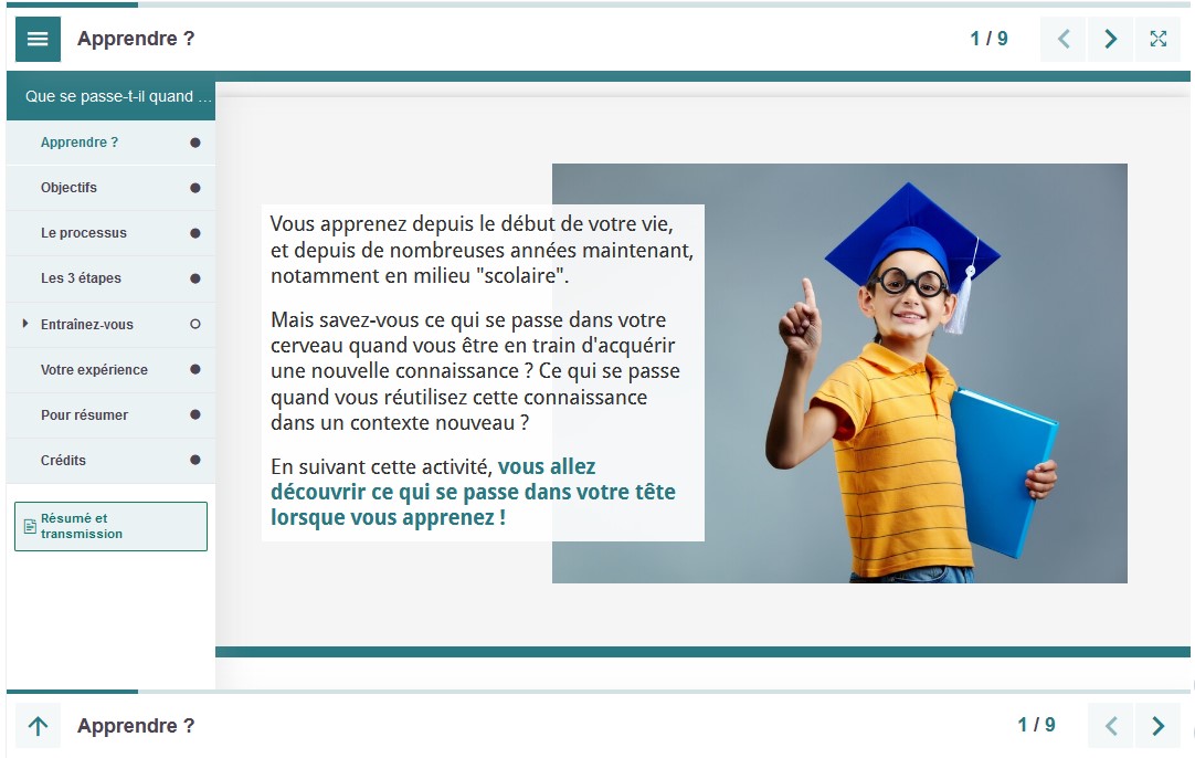 - Nommer et décrire chaque étape du processus d'apprentissage