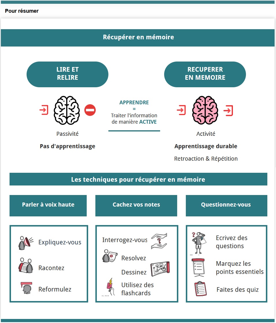 • Repérer des stratégies et techniques efficaces pour optimiser la récupération en mémoire