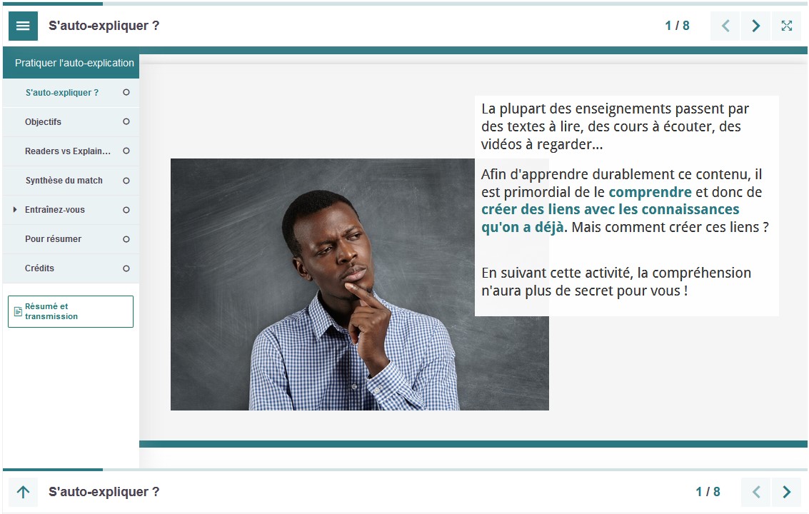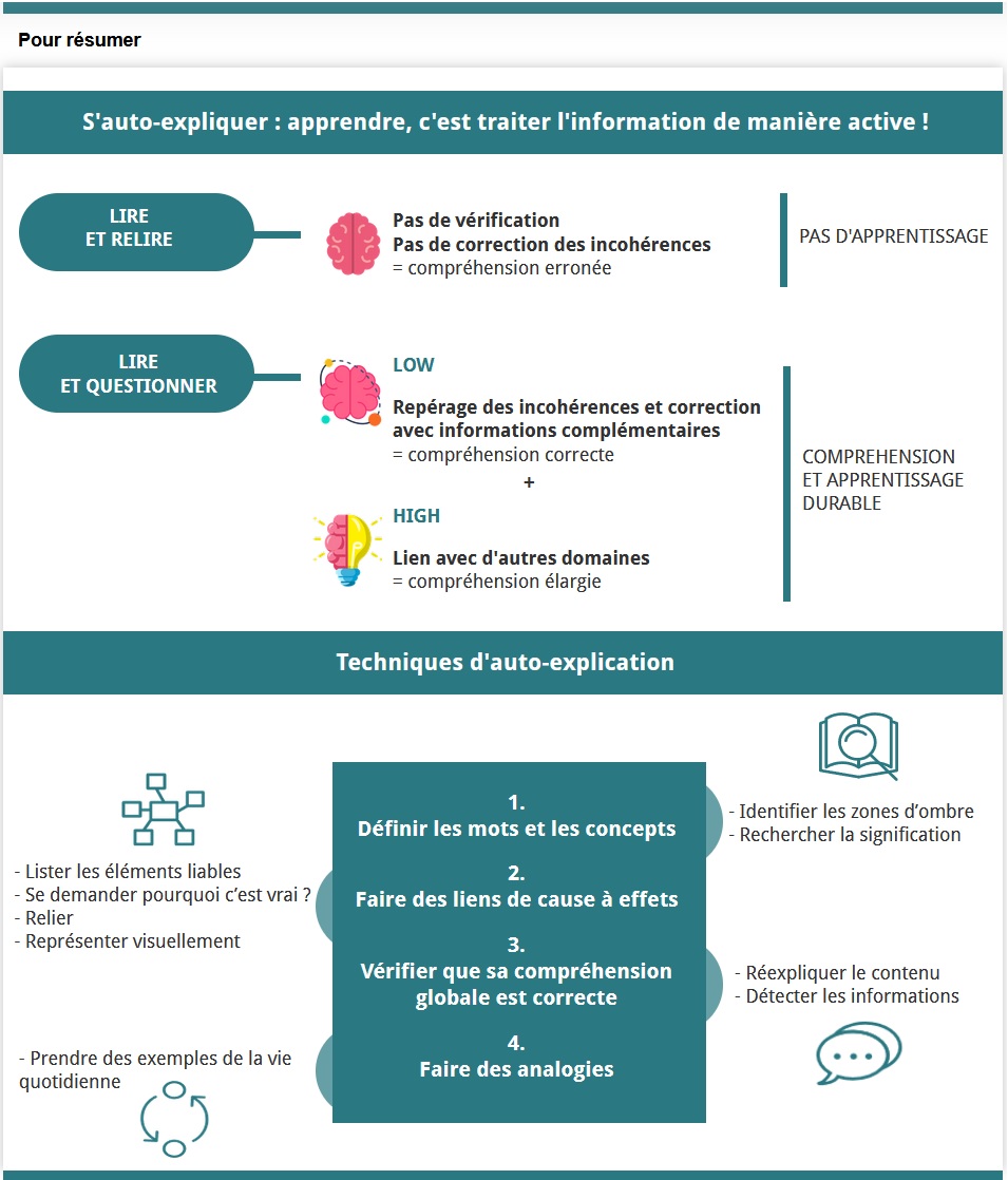 • Mettre en œuvre l'auto-explication dans une tâche d'apprentissage