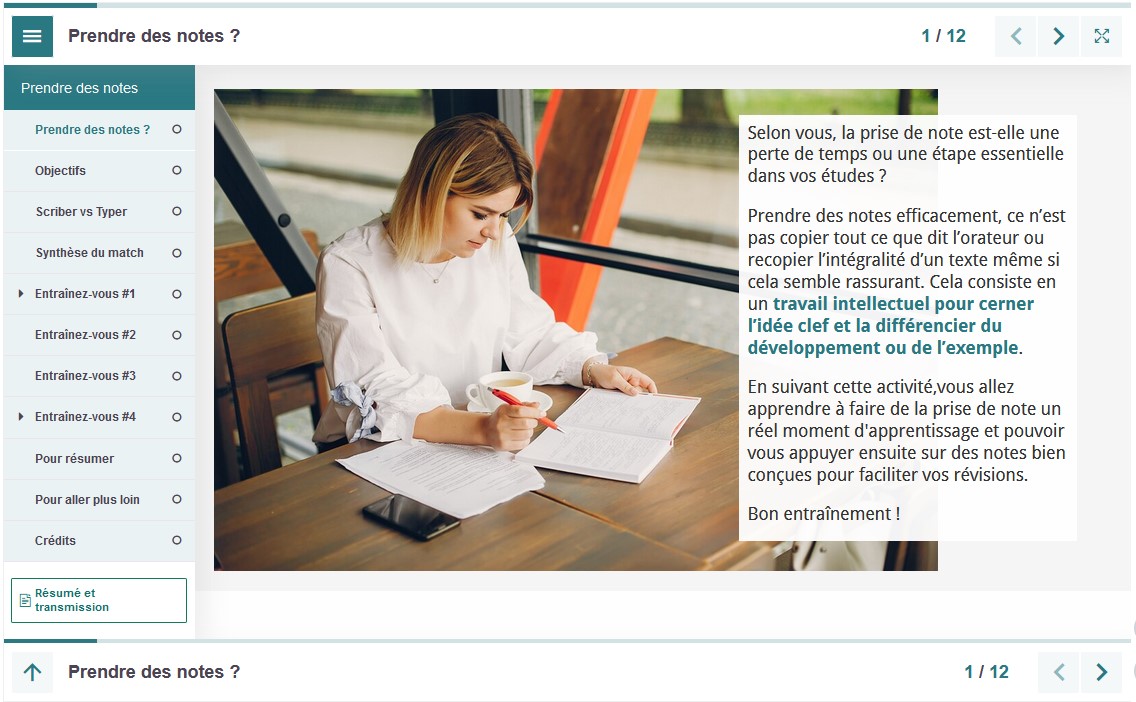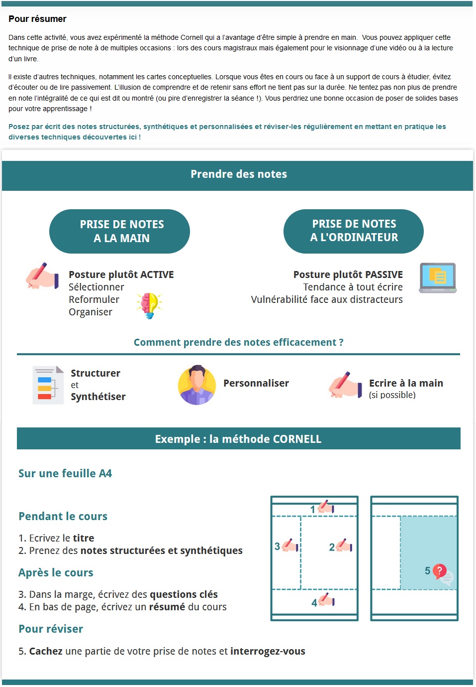 • Prendre des notes efficacement pour faciliter votre apprentissage