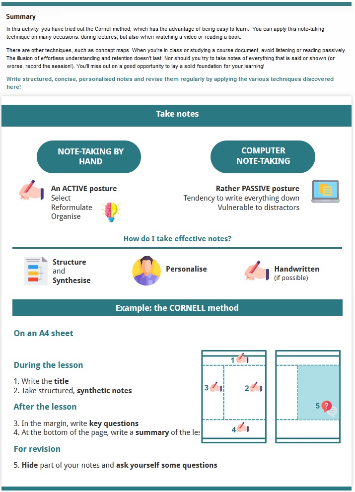 • Take effective notes to facilitate their learning